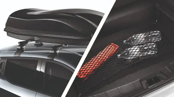 Extra-Komfort: Dachbox (480L), Querträger und Gepäcknetz. Perfekt für den Urlaub.